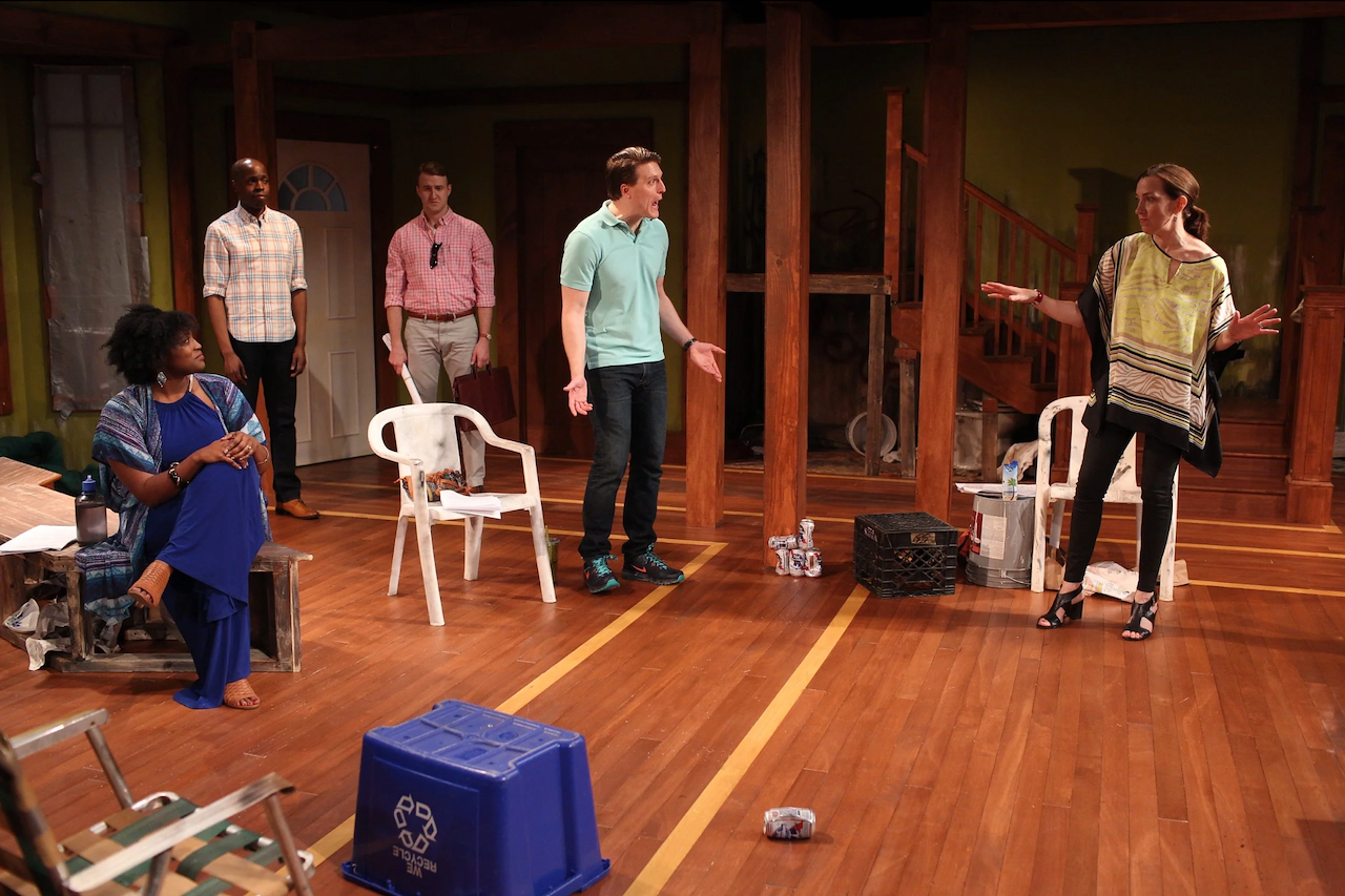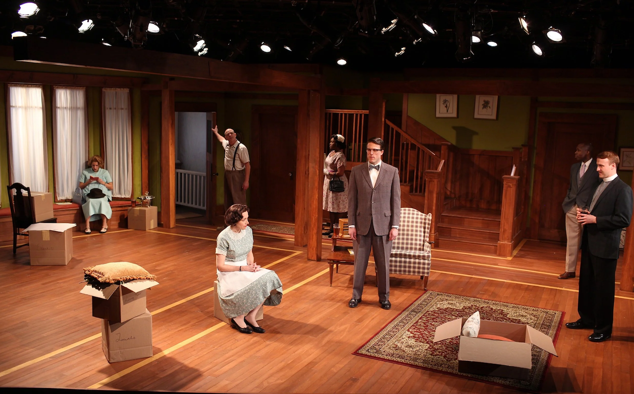‘Clybourne Park explodes in two outrageous acts set fifty years apart. Act One takes place in 1959, as white community leaders anxiously try to stop the sale of a home to a black family. Act Two is set in the same house in the present day, as the now predominantly African-American neighborhood battles to hold its ground in the face of gentrification.’ dramatists.com