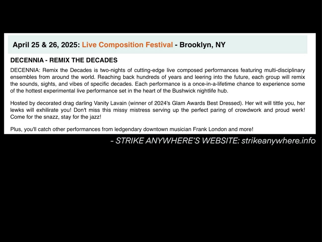 STRIKE ANYWHERE PERFORMANCE ENSEMBLE