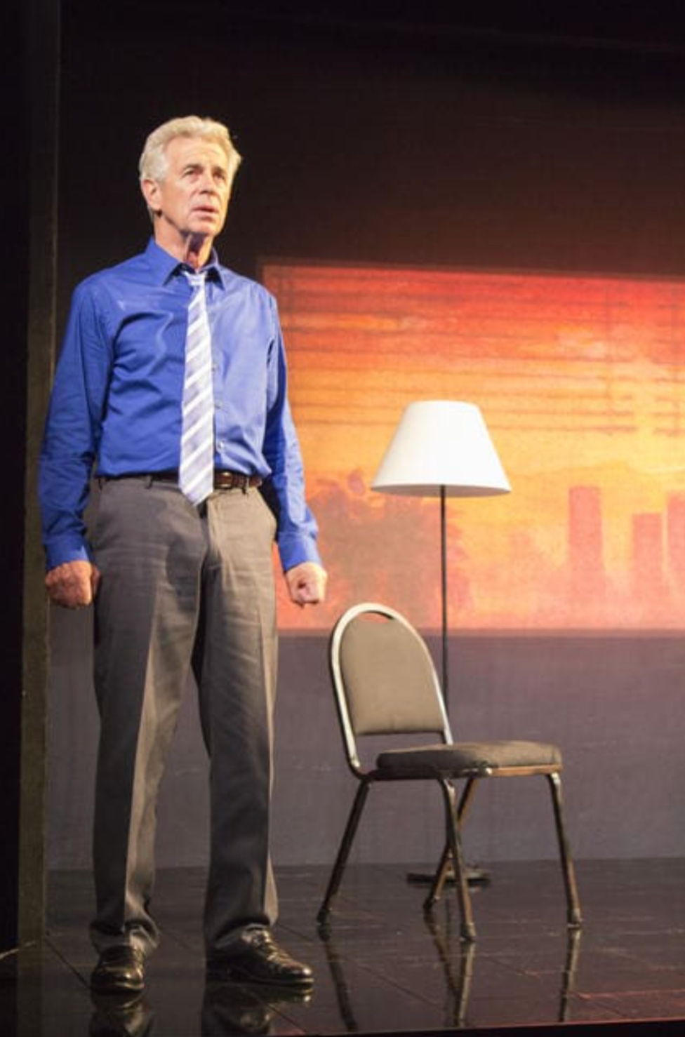 The play is a solo piece about a middle aged lawyer name Gabe. The setting is a California hospital for which the play is named.